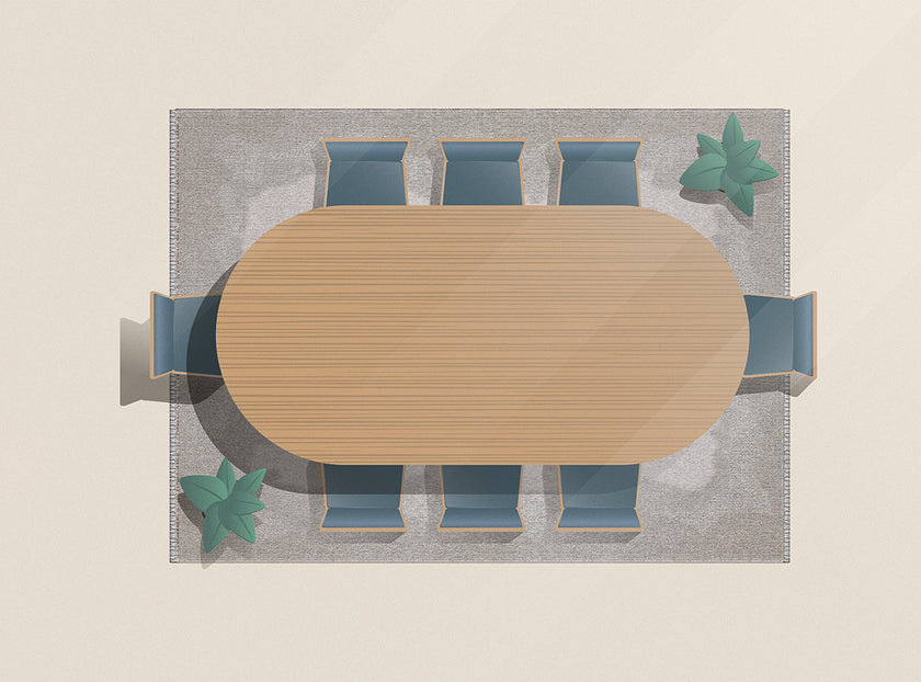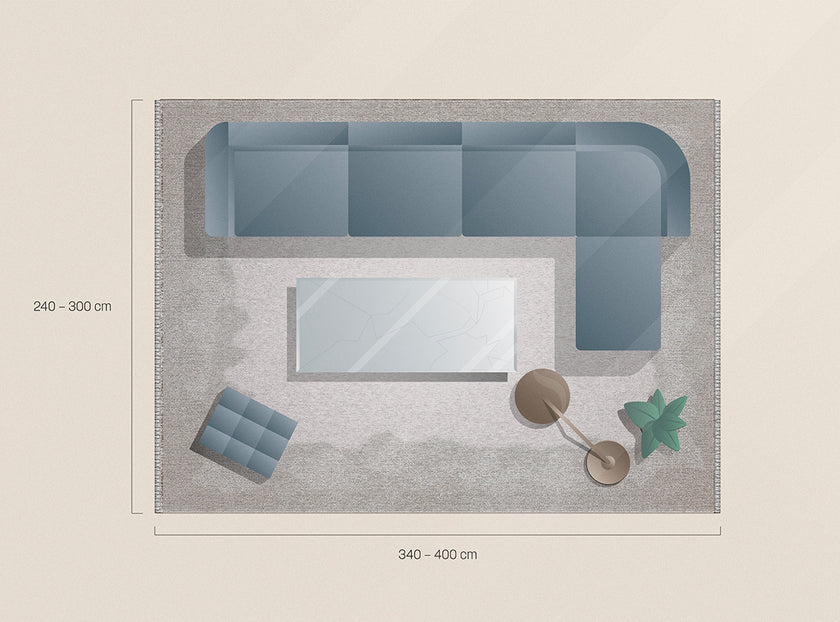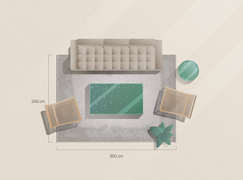 Þegar um minni rými er að ræða er fallegt að miðja mottuna á milli sófa, sjónvarps og stóla. Þá leikur rými um allar hliðar mottunar. Stærri motta hjálpar rýminu að sýnast stærra og rammar inn herbergið og lætur húsgögnin njóta sín betur.